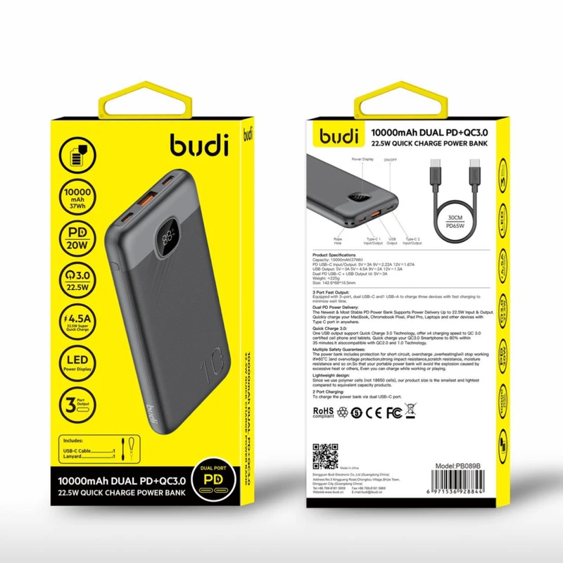 پاور بانک بودی مدل PB089B ظرفیت 10000 میلی آمپر ساعت